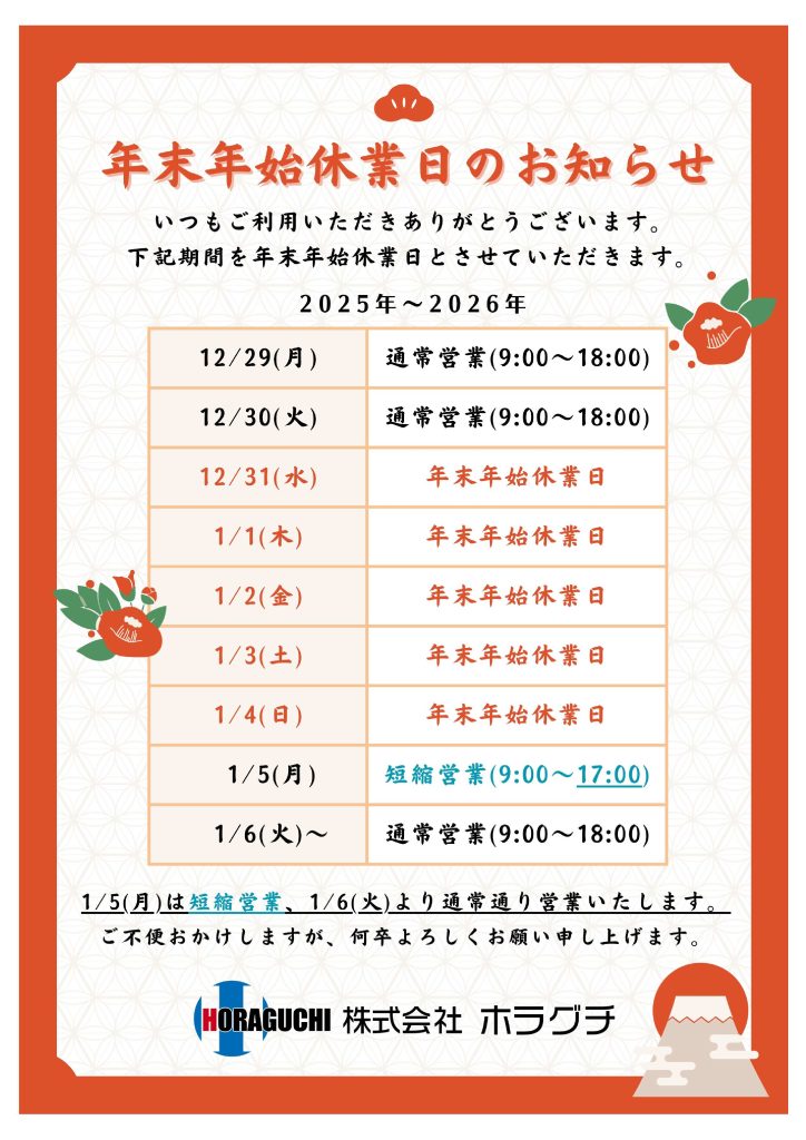 年末年始休業のお知らせ